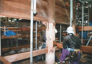 今はその木材補修も一段落し、元通りに本堂の柱を建て直したり、壁板を嵌め込んだりという作業へ入っています。