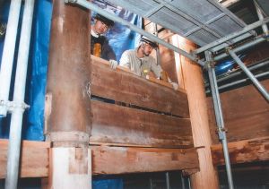 天台寺の工事でも、腐ってしまい傷みの激しい部分だけを切り取り、同じ材種の新しい木で補うなどの方法で修繕を行ってきました。