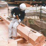 建て直した柱に部材を元通り建て込む