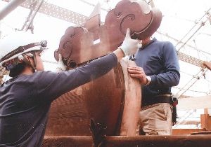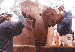 本堂正面の出入り口上部の組み立て過程