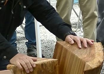 まずは30cm程の輪切りにした杉丸太から屋根板を作ります。