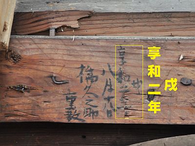 この保存修理工事によって新たに年号が発見されました。